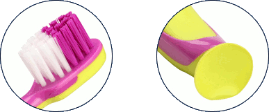 Rounded, soft bristles protect gums and support gentle cleaning of teeth